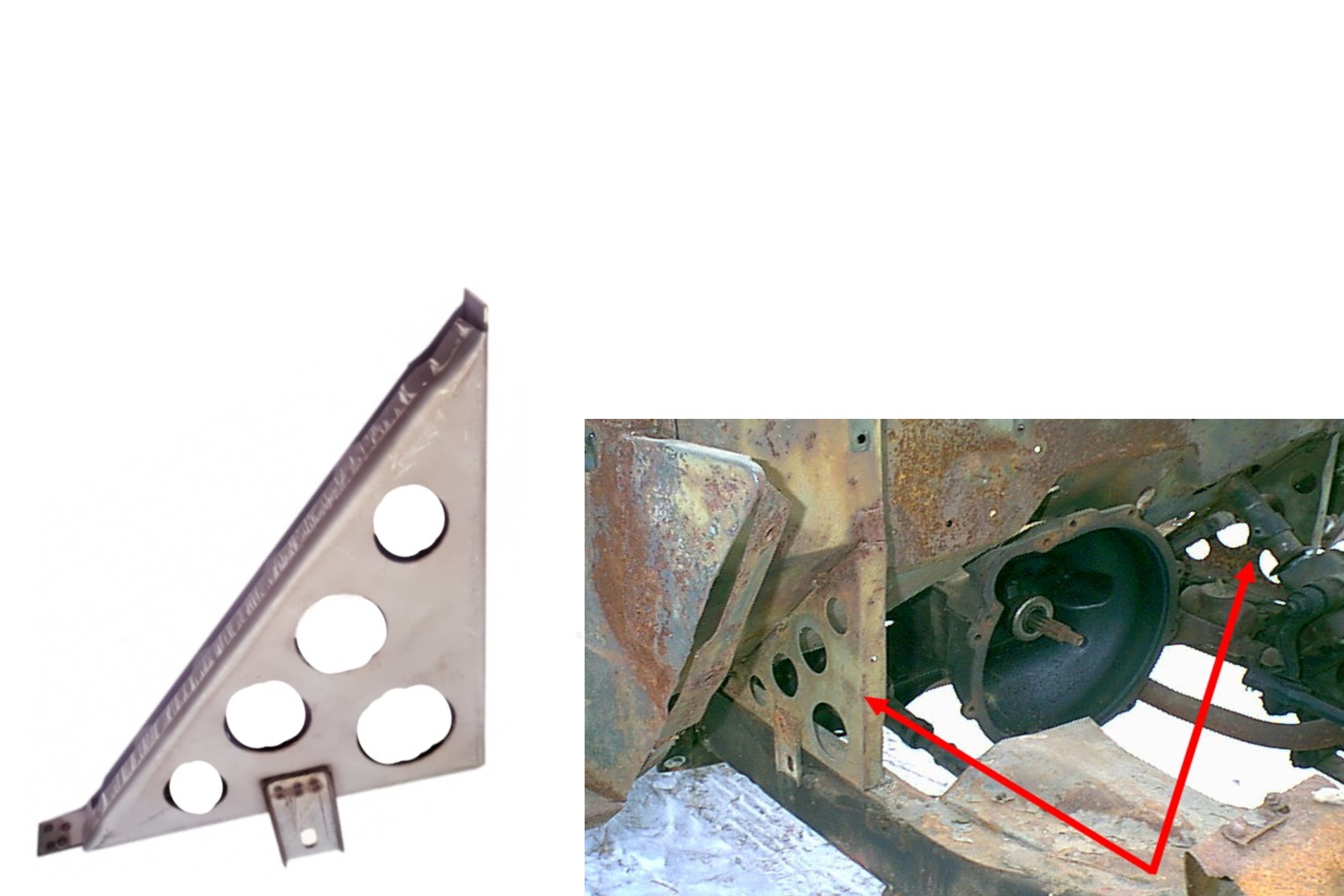 Joes Motor Pool vyrábí ACM1 Ford GPW & Willys MB Zintec body to Frame Gusset. Vyrobeno in-house, Zintec potažené Gusset, obvykle zbit & otlučené na původních vozidlech.